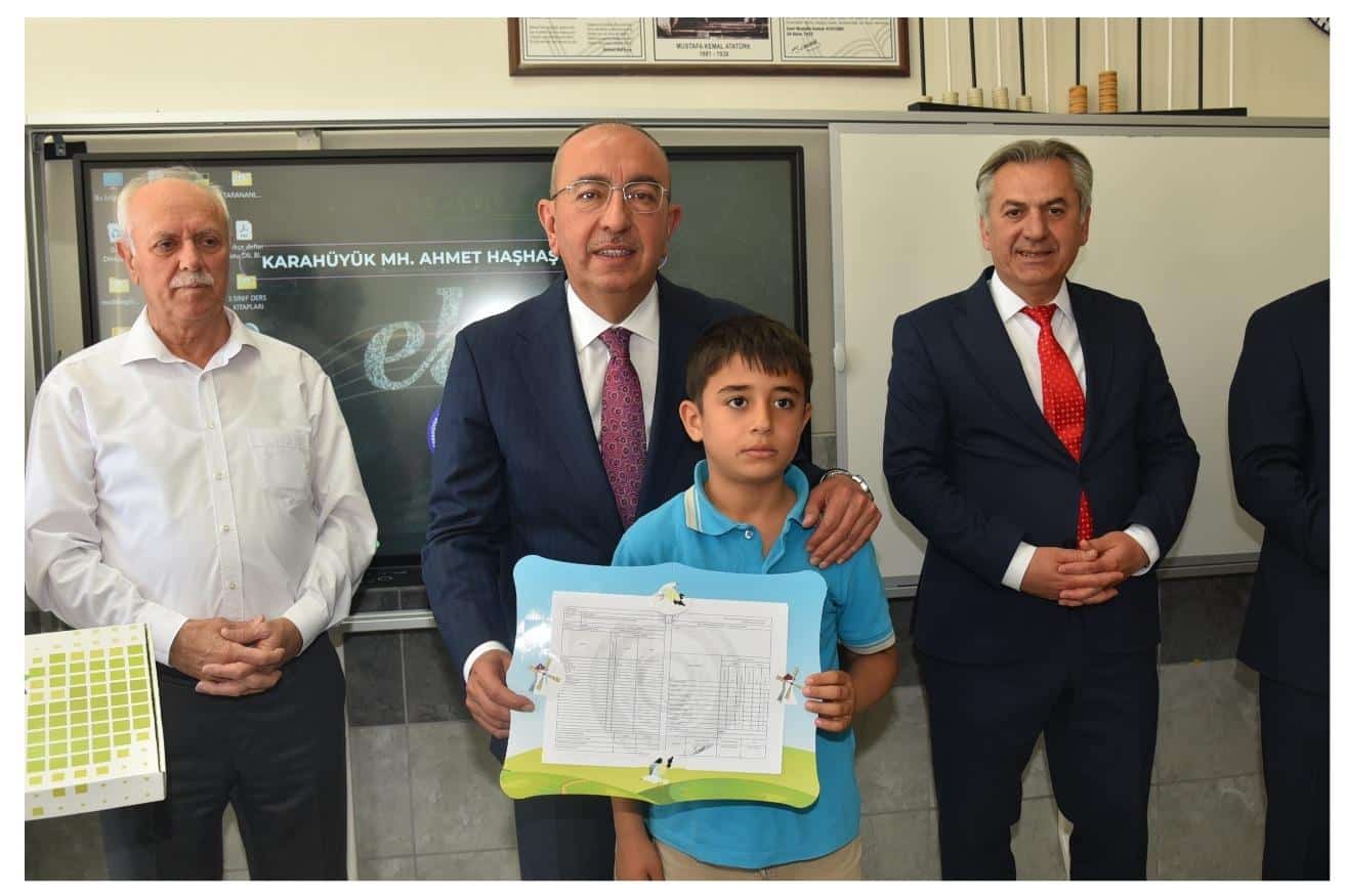 Törende protokol üyeleri, öğrencilere karnelerini takdim ederek başarı dileklerinde bulundu. Öğrencilere yaz tatilini verimli ve dinlenerek geçirmeleri tavsiyesinde bulunuldu.