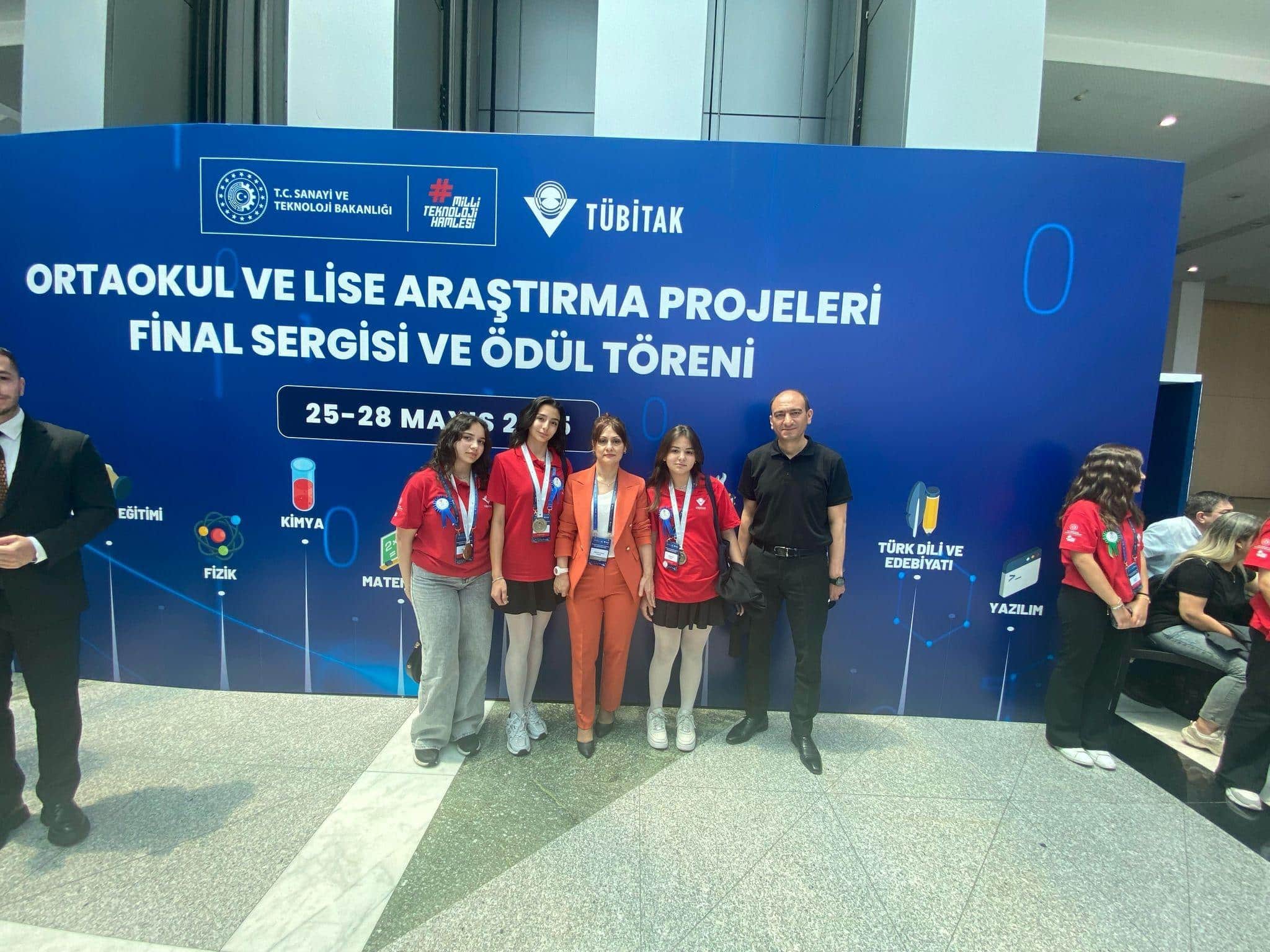 Bu büyük başarı, 7-G sınıfı öğrencilerimiz Emine Elif KUZU, Zeynep APAK ve Elif PARLAK ile danışman öğretmenimiz Münevver ODABAŞI'nın özverili çalışmaları sayesinde elde edilmiştir.